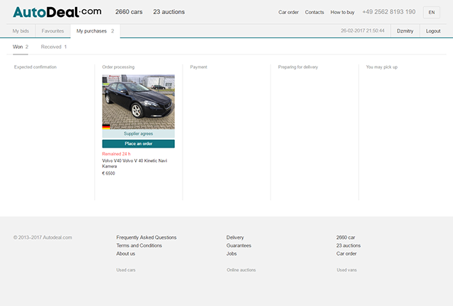 In case you win the auction, the car goes under the "WAITING FOR CONFIRMATION" status, and your bid goes to the provider (leasing company).